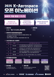 [한국방송/박기문기자] 우주항공청(청장 윤영빈)은 10월 13일(월) 우주항공청이 주최하고 한국항공우주산업㈜, 연구개발특구진흥재단, 진주강소특구(경상대학교), 한국항공우주연구원이 주관하는 「2025 K-Aerospace 오픈 이노베이션」을 추진하여 딥테크 기업을 육성할 계획이라고 밝혔다. 오픈 이노베이션은 기업의 수요 분야에 대한 기술 아이디어를 공모 후 수상자들에게 기술 실증 지원, 공동 개발, 투자 등을 지원하는 프로그램에 대한 통칭으로, 기술 혁신 아이디어를 발굴하고 구체화할 수 있는 기회이다. 이번「2025 K-Aerospace 오픈 이노베이션」은 ’25.10.13(월) ~ 11.5(수)까지 공모를 진행하며, 모집 대상은 수요기업인 KAI에서 제시한 총 4개 분야에서 KAI와 협업을 희망하는 기업으로, 서류 및 발표평가를 거쳐 총 3개사를 선정할 예정이다. 최종 선정기업에는 우주항공청장상, 특구재단 이사장상, KAI 대표이사상이 수여되며, 총 3천만원 규모의 KAI 사업화 자금이 지원된다. 또한, 선정기업에는 단순 시상에 그치지 않고, ▲KAI 전담 사업부서 매칭 및 전략적 투자 연계 검토 ▲특구재단 특구육성사업 및 특구펀드 투자 연계 ▲항우연의 패밀