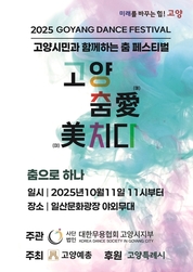 고양특례시(시장 이동환)가 후원하고 (사)한국예술문화단체총연합회 고양지회가 주최하며 (사)대한무용협회 고양지부에서 주관하는 '제29회 고양 춤 페스티벌'이 오는 11일 일산문화공원 야외무대에서 열린다. 이번 행사는 세대를 아우르는 다양한 장르의 춤 공연과 시민이 함께 참여하는 체험 프로그램을 통해 모두가 하나가 되는 야외 댄스 페스티벌로 마련됐다. 전통무용, 창작무용, 부채춤 등 다채로운 공연과 함께, 랜덤플레이댄스·페이스페인팅·부채춤 체험 등 시민 참여형 프로그램도 준비돼 남녀노소 누구나 즐길 수 있다 본 공연은 총 2회로 진행된다. 오후 4시 '우리의 춤, 삶의 무대'에서는 지역 무용단이 시민과 함께 어울리는 무대를 선보이고, 오후 5시 30분 '예술의 춤, 빛의 무대'에서는 고양시 무용단과 더불어 서경대학교 무용단, 김백봉부채춤무용단 등 외부 초청 단체가 출연해 다채롭고 수준 높은 무대를 펼친다. 이외에도 오전 11시부터는 시민들이 직접 참여할 수 있는 체험 부스가 운영되며, 오후 5시에는 K-pop을 배경으로 한 '랜덤 플레이댄스' 시민 참여 프로그램이 이어져 축제의 흥을 더할 예정이다. 장미영 (사)대한무용협회 고양지부장은 "올해 고양 춤 페스티벌은