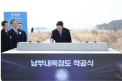 [한국방송/진승백기자] 경북 김천과 경남 거제를 잇는 남부내륙철도 건설사업이 첫 삽을 뜬다. 이에 영남 내륙과 남해안을 연결하는 고속철도망 구축이 본격화된다. 국토교통부는 6일 경남 거제시 견내량 인근에서 '남부내륙철도 건설사업 착공식'을 개최했다. 이날 행사에는 정부와 국회, 지방자치단체 관계자와 지역 주민 등 약 400여 명이 참석해 사업의 본격적인 출발을 함께했다. 이재명 대통령이 6일 경남 거제시 견내량 인근에서 열린 남부내륙철도 착공식에서 참석자들과 기념 세레머니를 하고 있다. 2026.2.6 (사진=연합뉴스) 남부내륙철도 건설사업은 철도 접근성이 낮아 이동에 불편을 겪어온 경북·경남 내륙과 남해안 지역의 교통 여건을 개선하고, 지역 경제를 활성화하기 위해 2019년부터 국가균형발전 프로젝트로 추진된 국책사업이다. 노선은 경북 김천시에서 경남 거제시까지 총 연장 174.6km이며, 총사업비 7조 974억 원이 투입된다. [그래픽] 남부내륙철도 노선도(연합뉴스) 철도가 개통되면 KTX-청룡이 하루 50회 운행될 예정이다. 서울·수서에서 거제로 향하는 열차는 하루 36회, 마산행은 14회가 계획돼 있다. 이에 따라 서울~거제 이동 시간은 기존 버스·승용