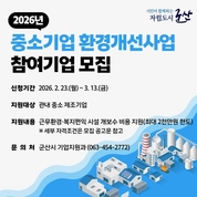 [군산/김주창기자] 군산시는 지역 내 중소 제조기업을 대상으로 ‘2026년 중소기업 환경개선사업’ 참여업체를 2월 23일부터 3월 13일까지 모집한다. 이번 사업은 산업현장의 안전 강화와 근로환경·복지 개선을 통해 기업 경쟁력과 근로자 만족도를 높이기 위해 추진된다. 지원 분야는 ▲근무환경 개선 ▲복지편익 개선 등 2개 분야다. 근무환경 개선사업은 작업장 시설(국소 배기 및 집진시설, 소음·악취 방지시설, 환기시설 등) 개·보수를 지원하며, 올해부터 소방시설 설치 지원을 신규로 포함하였다. 복지편익 개선 분야는 기숙사, 식당, 화장실, 샤워장, 체력단련시설 등의 근로자 편의시설 개·보수를 지원한다. 신청 기업은 두 분야 중 하나를 선택해 신청할 수 있으며, 선정된 업체에는 최대 2,000만 원까지 지원된다. 군산시는 서류 검토와 현장 확인을 거쳐 심의위원회를 통해 최종 지원 대상을 선정할 계획이다. 참여를 희망하는 기업은 3월 13일까지 군산시 기업지원과(063-454-2772)를 방문하거나 이메일(dhee0905@korea.kr)로 신청하면 되며, 신청서 및 구비서류 등 자세한 사항은 군산시청 홈페이지 고시·공고란에서 확인할 수 있다. 시 관계자는 “올해
