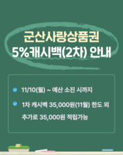[군산/김주창기자] 군산시가 행정안전부로부터 지역사랑상품권 발행 관련 특별지원 국비 보조금을 추가로 교부받아 특별 캐시백 적립 혜택을 제공한다. 혜택은 11월 10일부터 예산이 소진될 때까지 시행되며, 모바일형 및 카드형 군산사랑상품권을 사용하는 시민이 대상이다. 예산은 집행이 우수한 전국 32곳에만 추가 교부된 특별지원비로 추진되며, 총 171억 4천만 원 규모의 사업 예산에서, 군산시는 8억 6천만 원을 전액 국비로 교부받아 진행한다. 이번 사업으로 시민들은 월 최대 70만 원 사용 시 추가 캐시백 한도 3만 5천 원 혜택을 제공받을 수 있게 됐으며, 코리아그랜드페스티벌 이후에도 시민들이 받을 수 있는 혜택이 연장된 만큼 시는 실질적인 소비 촉진과 지역 상권 활성화를 기대하고 있다. 모바일상품권도 37억 원 규모로 추가 발행된다. 이번 추가 발행을 포함하여 올해 군산사랑상품권 총발행액은 4,157억 원이고, 11월 5일 기준 3,868억 원이(94%) 판매되고 있다. 시는 이번 특별캐시백 및 모바일상품권 추가 발행을 통해 지역경제 선순환 구조를 강화하고, 지역상품권 중심의 소비가 지역 내 자금 유출을 막고 상권 회복으로 이어지는 선순환 구조를 더욱 견고히