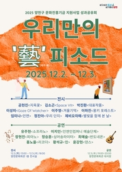 양천구(구청장 이기재)는 오는 12월 2일부터 3일까지 양천문화회관에서 '2025년 문화진흥기금 지원사업 성과공유회(우리만의 藝(예)피소드)'를 개최한다고 1일 밝혔다. '문화진흥기금'은 지역 간 문화격차 해소와 고유문화 발전을 위해 조성된 것으로, 구는 지역 예술인의 창작 역량 강화 및 활동 기반 확대를 위해 지원사업을 추진하고 있다. 전시와 공연으로 구성된 이번 성과공유회는 올해 문화진흥기금 지원을 받아 활동한 지역 청년·청소년·장애예술인 등이 한 해 동안 쌓아온 창작 성과를 구민에게 선보이는 자리다. 전시는 2일과 3일 양일간 양천문화회관 1층 로비와 전시실에서 열리며, 유리공예, 금속공예, 회화, 사진, 캘리그라피 등 다양한 장르의 작품이 소개된다. 주요 전시작으로는 ▲김소곤 작가의 유리공예 'Space VII' ▲이성미 작가의 장신구공예 'Gaze Of Watcher' ▲공현진 작가의 나무 꼭두 공예 '지옥꽃' 등 공예 작품과 ▲이하진 작가의 '몽키 포레스트' ▲이주영 작가의 '겨울기억' ▲정진아 작가의' 우리 단지' 등 회화 작품이다. 이외에도 박지환 작가의 사진과, 임미나 작가의 캘리그라피 등이 전시돼 작가의 고유한 시선과 감각이 담긴 작품을 만