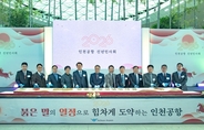 인천국제공항공사(사장 이학재)는 지난 19일 오후 인천공항 제2여객터미널 교통센터에서 '2026년 인천공항 신년 인사회'를 개최했다고 20일 밝혔다. 이날 행사에는 인천국제공항공사 이학재 사장, 서울지방항공청 권혁진 청장, 인천공항출입국외국인청 박상욱 청장을 비롯하여 인천공항 상주기관장과 항공사, 상업시설, 물류업체 대표 등 공항상주직원 약 200명이 참석했다. 이번 신년 인사회는 공항상주직원이 한 자리에 모여 지난해 주요성과를 돌아보고 올 한해 안전하고 편리한 공항운영을 위한 주요목표와 계획을 공유하기 위해 마련되었다. 이날 행사는 지난해 대국민 오디션을 통해 선발된 인천공항 버스킹 공연팀인 '블랙 색소폰 앙상블'의 축하공연으로 시작되었으며, 공사 이학재 사장의 신년인사와 새해맞이 대형 떡 케익 커팅 등의 순서로 진행되었다. 이 자리에서 참석자들은 새해를 맞아 서로 덕담을 주고받고 각 기관별 주요 계획을 공유하며 상호 화합의 시간을 가졌다. 인천국제공항공사 이학재 사장은 "지난해 역대 최고 항공운송실적 에도 안전하고 편리한 무결점 공항운영을 가능하게 한 9만 4천여 공항상주직원의 노고에 감사드린다"며 "올해는 안전을 최우선 가치로 AI 전환 등 공항운영 혁