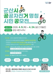 [군산/김주창기자] 군산시가 QR코드 방식의 공공자전거 대여·반납 시스템 개편에 맞춰, 시민이 직접 이름을 정하는 ‘공공자전거 명칭 시민 공모전’을 개최한다. 이번 공모전은 자전거 이용 활성화와 함께 시민이 정책 추진 과정에 직접 참여할 수 있도록 마련된 것으로, 군산시민이라면 누구나 참여할 수 있다. 접수 기간은 4월 9일(목) 오전 9시부터 4월 24일(금) 오후 6시까지이며, 군산시 누리집 또는 안내문에 포함된 QR코드를 통해 온라인으로 간편하게 신청할 수 있다. 공모는 군산시 공공자전거를 대표할 수 있는 4자 이내의 이름과 함께, 20자 이상의 제안 취지를 작성해 제출하면 된다. 심사는 독창성, 적합성, 대중성을 기준으로 총 3단계에 걸쳐 진행된다. 특히 2차 심사에서는 시민 선호도 조사를 반영해 많은 시민들의 의견을 적극적으로 반영할 예정이다. 시상은 총 3명(팀)에게 수여되며, 최우수상 1명에 군산사랑상품권 50만원, 우수상 1명에 30만원, 장려상 1명에 20만원이 주어진다. 최종 선정된 이름은 향후 군산시 공공자전거의 공식 명칭으로 활용될 계획이다. 시 관계자는 “시민들의 참신한 아이디어가 공공자전거의 새로운 이름이 될 것”이라며 “누구나 쉽게