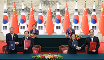 [한국방송/진승백기자] 한국과 중국이 중소벤처 분야 협력 범위를 스타트업 육성과 신기술 기반 지원까지 확대한다. 중소벤처기업부는 5일 중국 베이징 인민대회당에서 한·중 양국 정상이 함께한 자리에서 중국 공업정보화부와 '중소기업 및 혁신 분야 협력에 관한 양해각서'를 체결했다고 밝혔다. 노재헌 주중대사(왼쪽부터)와 류웨이 중국 교통운수부 부장, 한성숙 중기부 장관과 리러칭 중국 공업정보화부 부장이 5일 베이징 인민대회당에서 이재명 대통령과 시진핑 국가주석이 참석한 가운데 각각 교통 분야 협력 및 중소기업과 혁신 분야에 관한 협약식을 하고 있다. 2026.1.5 (사진=연합뉴스) 이번 양해각서는 지난해 9월 제주에서 열린 '2025 APEC 중소기업 장관회의'를 계기로 7년 만에 성사된 한·중 중소벤처 분야 고위급 교류 이후, 양 부처가 협력 방안을 지속적으로 논의한 결과다. 중기부와 공정부는 이번 국빈 방문을 중소벤처 분야 협력 강화를 위한 계기로 삼자는 데 공감대를 형성하고 협약을 체결했다. 이번 협약은 2024년 6월 만료된 양 부처간 기존 양해각서를 기반으로 협력 범위를 확대한 것이 특징이다. 기존의 중소기업 육성 정책 정보·경험 공유와 전문가 등 인적