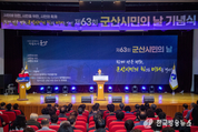 [군산/김주창기자] 군산시가 26일 시청 대강당에서 제63회 군산시민의 날 기념행사를 개최했다. 이번 행사는 ‘함께 만든 변화, 군산시민의 힘으로 미래를 열다’라는 주제로 군산시민으로서의 자긍심을 고취하고 군산시민의 화합과 단합을 도모하기 위해 마련됐다. 제63회 군산시민의 날 기념행사는 1부 기념식, 2부 시민과 함께하는 타운홀미팅 그리고 부대행사로 OMG(Oh My Gunsan) 정책홍보부스 등 시민과 함께 만들어가는 소통의 장으로 꾸며졌다. 1부 기념행사는 팝페라 가수팀 펜타보체가 시민들과 함께 ‘군산시민의 노래’를 부르며 환상적인 하모니를 선사하며 시작됐다. 이어 시민 인터뷰 형식으로 이루어진 군산의 과거와 현재, 그리고 변화하는 미래를 담은 기념영상「함께 만든 변화, 군산시민의 힘으로 미래를 열다」가 상영되어 행사장의 분위기를 고조시켰다. 영상이 끝난 뒤에는 군산시민헌장 낭독, 군산시민의 장과 모범시민상 시상식, 기념사, 군산시민의 노래 제창 순으로 진행됐다. 2부 시민과 함께하는 타운홀미팅은 시장과 시민의 열띤 즉석 문답이 이어졌다. 지역 경제살리기, 문화·관광 활성화 그리고 지역현안 총 3분야를 놓고 시민들은 궁금한 점을 자유롭게 질문했으며, 강