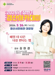 [경산/김근해기자] 경산시(시장 조현일)는 26일 경산시민회관 대강당에서 『2026년 상반기 경산 아카데미』를 개최할 예정이다. 이번 특강은 MK Creatice 대표 김미경 강사를 초청해‘매일 더 나은 나를 만나는 법’을 주제로 진행될 예정이다. 관계와 소통·동기부여 등 다양한 분야에서 활발한 강연 활동을 이어오고 있는 대표적인 자기 계발 강연가인 김미경 강사는 정곡을 찌르는 통찰력 있는 메시지와 공감을 주는 강연으로 많은 이들의 호응을 얻고 있다. 특히 변화하는 시대 속에서 개인의 성장과 도전을 독려하며 현실적인 조언과 따뜻한 공감을 바탕으로 삶의 방향과 지속적인 성장을 제시하는 강연으로 널리 알려져 있다. 대표 저서는「김미경의 딥마인드」, 「마흔 수업」, 「인생미답」등이 있다. 이번 상반기 경산 아카데미는 티켓링크(www.ticketlink.co.kr)를 통해 예매 할 수 있으며 전 좌석 무료로 신청 가능하다. 취소되거나 미수령 표가 있는 경우에 한해 당일 현장 접수로 대체할 예정이다. 경산아카데미는 다양한 분야의 명사들을 초청하여 수준 높은 평생학습 특강을 제공하는 프로그램으로, 매년 시민들의 꾸준한 관심과 참여를 이어오고 있다. 기타 궁금한 사항은