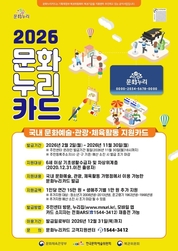 [경기/김명성기자] 경기도가 6세 이상 기초생활수급자나 차상위계층의 문화·여행·체육 활동을 지원하기 위해 추진하는 통합문화이용권 ‘문화누리카드’의 지원금이 15만 원으로 전년 대비 1만 원 인상된다. 13~18세 청소년이나 60~64세 도민이라면 16만 원까지 지원받을 수 있다. 추가 지원 대상은 2008~2013년생과 1962~1966년생이다. 경기도는 올해 약 51만 명의 도민에게 다양한 문화 활동비를 지원하기 위해 국비 포함 총 778억 원의 예산을 투입한다고 8일 밝혔다. 문화누리카드 발급은 가까운 행정복지센터를 방문하거나 문화누리카드 누리집과 모바일앱을 통해 11월 30일까지 발급 신청할 수 있으며, 사용 기한은 12월 31일까지다. 지난해 3만 원 이상 사용한 이력이 있고 올해도 수급 대상 조건을 유지한다면 별도 신청 없이 자동으로 1만 원 인상된 지원금이 재충전된다. 문화누리카드 사용처와 잔액 확인 등 자세한 사항은 문화누리 누리집(mnuri.kr)에서 확인할 수 있다. 경기도 박래혁 문화체육관광국장은 “문화누리카드는 단순한 지원을 넘어, 도민의 문화 향유권을 실질적으로 보장하는 문화복지 정책”이라며, “앞으로도 경기도가 선도적인 역할을 할 수