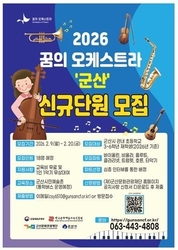 [군산/김주창기자] (재)군산문화관광재단이 ‘2026 꿈의 오케스트라 군산’과 함께 할 신규단원을 오는 20일까지 공개 모집한다. ‘꿈의 오케스트라 군산’은 문화체육관광부가 주최하고 한국문화예술교육진흥원이 주관하는 사회통합적 문화예술교육 프로그램이다. 특히 지역 아동·청소년이 오케스트라 합주 교육에 따라 삶의 가치를 발견하고 건강한 문화시민으로 성장하도록 돕는 사업으로, 군산은 지난 2025년 공모사업에 선정되어 운영을 이어오고 있다. 재단은 올해에는 오케스트라의 음악적 완성도를 높이고 균형 잡힌 연주를 구성하기 위해 기존 8개 악기 부문에 호른 부문을 신설하기로 했다. 이를 바탕으로 한층 심화된 단계별 오케스트라 교육을 운영할 계획이다. 모집인원은 총 18명으로 ▲바이올린 6명 ▲비올라 5명 ▲플루트 1명 ▲클라리넷 1명 ▲트럼펫 1명 ▲호른 2명 ▲타악기 2명이다. 지원 자격은 군산 관내 초등학교에 재학 중인 10~13세(초등 3~6학년) 아동·청소년이다. 또한 악기를 배운 경험이 없어도 정기교육을 비롯해 여름 예술 학교, 정기공연 등 ‘꿈의 오케스트라 군산’의 주요 교육 과정에 성실히 참여할 의지가 있다면 누구나 지원할 수 있다. 선발된 단원들은 오는