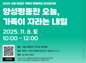 [서울/박기문기자] 서울시여성가족재단(대표이사 박정숙)은 오는 11월 8일(토) 오전 10시, 서울가족플라자 지하 1층 다목적홀에서 ‘서울 여성과 가족이 함께하는 토크콘서트’를 개최한다고 밝혔다. 이번 행사는 올해 6~9월, 4개월간 서울시여성가족재단이 진행한 시민 참여형 문화·감성 프로그램 ‘여가(女家)살롱’을 잇는 토크콘서트로, 일상에서 누구나 공감할 수 있는 생활 밀착형 주제를 다룬다. 특히 이번 토크콘서트는 UN이 지정한 ‘국제 돌봄과 지원의 날(10월 29일)’을 기념해, 돌봄의 사회적 가치를 재조명하고 양성평등한 가족문화 확산을 도모하기 위해 마련됐다. ‘양성평등한 오늘, 가족이 자라는 내일’을 주제로, 시민과 함께 육아의 기쁨과 가족의 성장, 양육의 즐거움을 이야기하는 참여형 토크 무대로 구성된다. 재단은 이번 토크콘서트를 통해 아빠의 육아 경험, 양육자의 스트레스 해소법, 재미있는 실전 육아 꿀팁 등 현실적인 주제를 유쾌하고 따뜻하게 풀어내며, 가족이 함께 회복하고 성장할 수 있는 메시지를 전할 예정이다. 강연·공연·체험 프로그램이 결합된 이번 토크콘서트는 양육자와 자녀가 함께 보고·듣고·즐기는 열린 축제형 행사로 운영된다. 무대에는 △이다랑