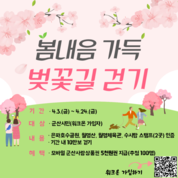 [군산/김주창기자] 군산시보건소(소장 문다해)가 봄철 시민들의 건강한 생활습관 형성을 위해 오는 4월 3일부터 24일까지 3주간 ‘봄내음 가득, 벚꽃길 걷기’ 챌린지를 운영한다. 이번 챌린지는 모바일 앱 ‘워크온(WalkOn)’을 활용해 군산시민 누구나 참여할 수 있다. 참여 방법은 은파호수공원, 월명산, 월명체육관, 수시탑 등 군산의 주요 벚꽃 명소 코스 중 2곳 이상의 스탬프를 인증하고, 기간 내 총 10만 보 걷기를 달성하면 된다. 보건소는 미션을 완료한 참여자 중 추첨을 통해 100명에게 모바일 군산사랑상품권 5천원권을 지급할 예정으로, 시민들이 건강을 챙기면서 소소한 행운도 함께 누릴 수 있도록 기획했다. 참여를 희망하는 시민은 ‘워크온’ 앱 설치 후 군산시 커뮤니티에 가입해 챌린지 참여 신청을 하면 된다. 워크온은 스마트폰을 기반으로 개인의 걸음 수를 측정하고 다양한 걷기 챌린지를 제공하는 모바일 건강관리 플랫폼으로, 시민들이 일상 속에서 쉽고 재미있게 신체활동을 실천할 수 있도록 돕고 있다. 보건소 관계자는 “따뜻한 봄날을 맞아 시민들이 벚꽃길을 걸으며 자연스럽게 신체활동을 실천하고 건강을 챙기는 계기가 되길 바란다”며, “앞으로도 다양한 프로그