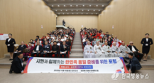 [한국방송/진승백기자] 한반도의 항구적 평화와 통일을 위한 국민적 공감대 형성을 목표로 열린 **‘시민과 함께하는 한반도 통일 준비를 위한 평화포럼’이 11월 15일(토) 천안 축구센터 세미나실에서 성황리에 마무리됐다. 이번 행사는 (사)민족통일불교중앙협의회가 주최하고 통일부가 후원했다. 이번 포럼은 ▲정부의 한반도 평화·통일 정책에 대한 국민적 지지를 확산하고 ▲민간 차원의 정책 비전을 공유하며 ▲범국민 통일운동으로 발전시키는 데 그 의의가 있다. 특히 평화의 가치를 일상 속에서 실천할 수 있는 교육적 기반을 마련하고 세대별·계층별 실천 방안을 제시함으로써 평화문화 정착을 위한 방향성을 제시했다. 행사는 개회선언과 국민의례를 시작으로 내빈 소개 및 기념 촬영, 윤치환 큰스님의 통일염원 발원문, 통일부 장관 표창 시상, 김법혜 의장의 환영사, 윤준호 경기도 정무수석(전 국회의원)의 특강 ‘한반도 평화협력과 경기도의 역할’, 박상헌 시인의 통일염원 시 낭송 순으로 진행됐다. 윤치환 큰스님은 축원문에서 “남과 북은 연기의 이치 속에 서로 연결된 존재”라며 “지혜와 자비의 마음으로 대립의 벽을 허물고 신뢰의 다리를 놓아야 한다”고 강조했다. 김법혜 (사)민족통일불