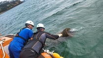 [충남/오창환기자] 충남도는 보령 허육도 남서방 해상에서 운항 선박의 안전을 위협하던 항만 공사용 기초파일(쇠말뚝) 1개를 14일 오전 인양했다고 밝혔다. 이날 인양한 기초파일은 20m 길이에 무게는 5톤 안팎으로 추정되고 있다. 이 기초파일은 한쪽에 콘크리트가 채워지고, 다른 한쪽에는 공기가 채워진 채 바다 밑바닥에 45도 각도로 비스듬히 박혀 있었다. 이에 따라 바닷물 수위가 낮아지는 저조 때 수면 위로 일부를 노출하며 파도에 흔들렸고, 수위가 올라가면 물 속에 잠겨 모습을 감추며 인근 운항 선박의 사고 위험성을 높였다. 이 같은 상황을 감안, 도는 항행 선박 안전사고 예방을 위해 환경정화운반선인 늘푸른충남호를 긴급 투입, 보령해경 잠수구조대와 합동 작업을 통해 기초파일을 인양·예인해 관할 보령시에 인계했다. 전상욱 도 해양수산국장은 “늘푸른충남호는 해양쓰레기를 운반하는 선박으로 이번 기초파일 같은 항행장애물을 인양할 수 있는 장비가 없는 형편이지만, 통항 선박의 안전을 위해 해경 등 유관 기관과 힘을 합해 어려운 작업을 수행해냈다”며 “앞으로도 해상 안전을 최우선적으로 고려해 정책 및 사업을 수립·추진 할 것”이라고 말했다.