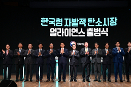 [한국방송/오창환기자] 기획예산처(이하 ‘기획처’)는 4월 27일(월), 대한상공회의소에서 「한국형 자발적 탄소시장 얼라이언스 출범식」을 개최하였다. 이번 행사는 탄소중립(Net-Zero) 이행을 뒷받침할 추가적인 탄소 감축 동력으로서 자발적 탄소시장의 중요성*을 인식하고, 민·관이 협력하여 신뢰성 있는 탄소시장 생태계를 조성하기 위해 마련되었다. * 배출권거래제(ETS)는 국가온실가스의 약 71%를 포함하고 있으나 연평균 배출량이 12.5만톤 이상이거나 2.5만톤 이상 사업장을 가진 업체를 대상으로 하여, 중소기업·스타트업 등의 감축 유인을 제고하기에는 한계 ⇒ ETS 비규제 대상기업(국가온실가스의 약 30%)의 감축 인센티브를 강화하기 위해 자발적 탄소시장 활성화 필요성 지속 제기 < 행사 개요 > · 일시/장소 : '26.4.27.(월) 10:00~11:50 / 대한상공회의소 국제회의실 · 참석 : 기획예산처 장관, 최태원 대한상공회의소 회장, 정은보 한국거래소 이사장, 삼성전자, SK 하이닉스, LG전자, 재원산업, 에스지이, 엘디카본, 카본에너지 NH투자증권, IBK기업은행 등 얼라이언스 기업 및 관심 기업 박홍근 기획처 장관은 개회사를