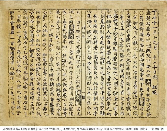 조선 1577년 발행한 ‘민간인쇄조보’는 세계 최초로 활자조판 방식을 사용해 1650년 독일에서 간행한 ‘아인코멘데 자이퉁 Einkommende Zeitungen’보다 73년, 1638년 중국에서 간행한 ‘저보(邸報)’보다 61년 앞선 최초의 활판 신문으로 만들어졌다.