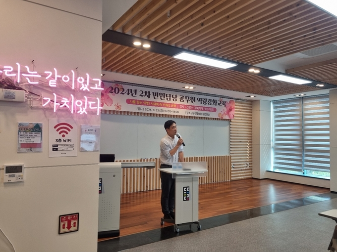 특히 최근 급증하는 특이민원에 대응할 수 있도록 영화 속 주인공의 이야기를 통한 ‘특이민원 대응 방안 교육’을 함께 진행하여 높은 호응과 관심을 이끌어냈다.