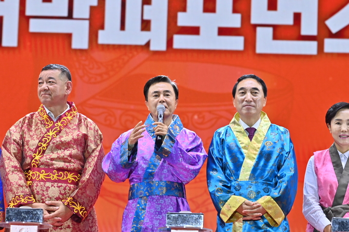 김태흠 지사와 최원철 공주시장을 비롯한 주요 내빈과 지역민, 축제 관람객 등 3000여 명이 참석한 가운데, 이번 개막식은 영상 상영, 백제 혼불 깨움, 개막 퍼포먼스, 주제 공연, 축하 공연, 드론쇼 등의 순으로 진행됐다.