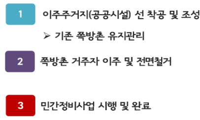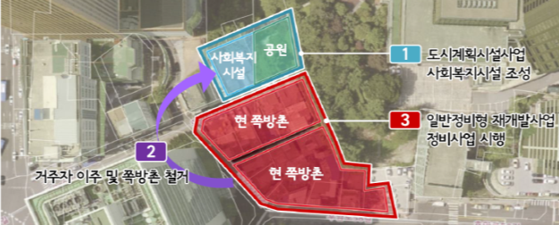 현재 ‘영등포쪽방촌’도 이와 유사한 순환개발 방식으로 정비를 진행 중으로 쪽방 주민들이 타지역이 아닌 현재 거주 지역 내 임대주택이 공급되면 이주할 예정이다. 현재는 LH․SH 등의 사업시행자가 토지 등 보상 절차를 진행하고 있다.