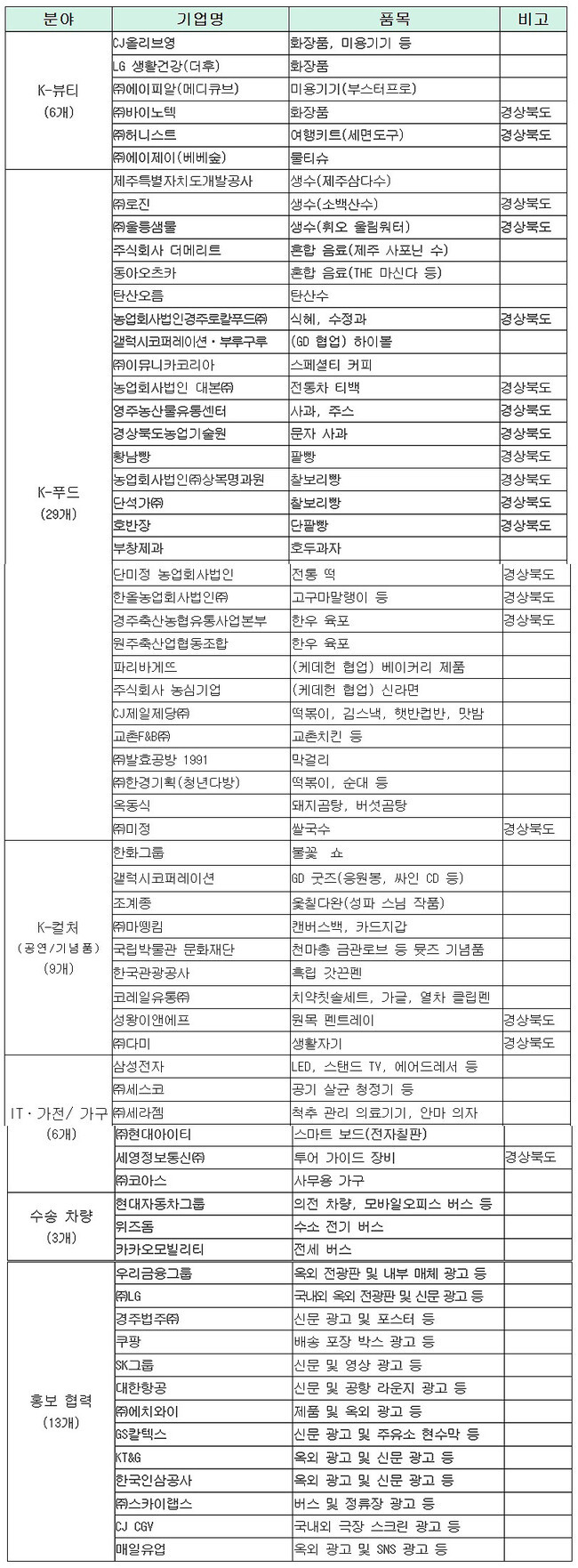 참고: 2025년 APEC 공식 협찬사 및 홍보 협력사 현황