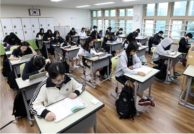 부산 동래구 중앙여자고등학교 3학년 교실에서 수험생들이 자율학습을 하고 있다. 2025.10.1 (ⓒ뉴스1)