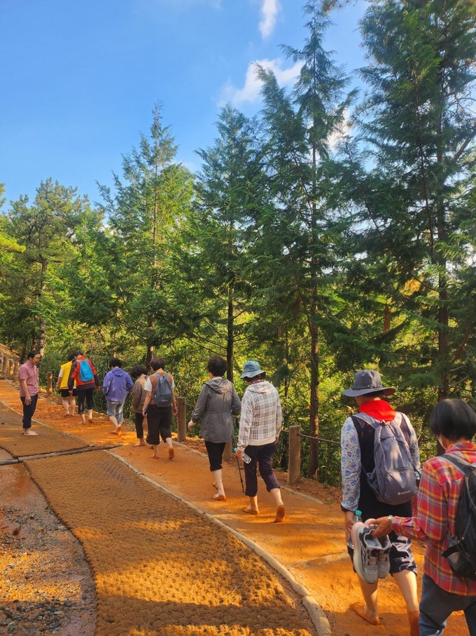 이어 2부에서는 봉대미숲 황톳길로 이동해 약 1.4km 구간을 맨발로 걸으며 숲속 자연환경을 오감으로 체험했다.