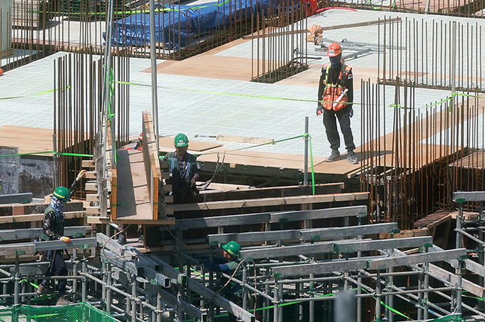 서울 시내 신축 아파트 시공 현장에서 건설노동자들이 작업을 하고 있다. 2025.4.30 (ⓒ뉴스1)
