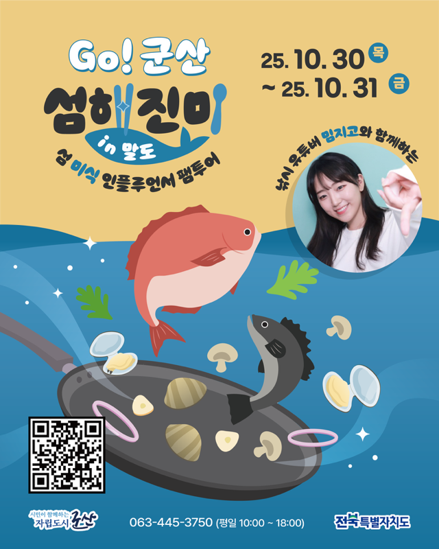 이번 투어는 선착순 사전모집으로 진행되며 참가 신청은 군산시 공식 사회관계망 계정(페이스북, 인스타그램)에 있는 ‘GO! 군산 섬해진미’ 안내 게시글 QR 부호(코드)를 통해 신청할 수 있다.
