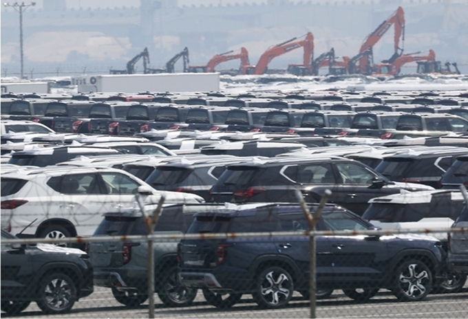 경기 평택시 포승읍 평택항에 수출용 차량이 세워져 있는 모습. 2025.8.1 (ⓒ뉴스1)