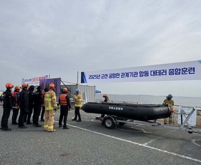[군산/김주창기자] 지난 21일 군산공항과 새만금호 일원에서는 정부기관 및 軍ㆍ공기업ㆍ민간기업 등 24개 기관(230여명)이 참여하는 대규모 훈련이 진행되었다.