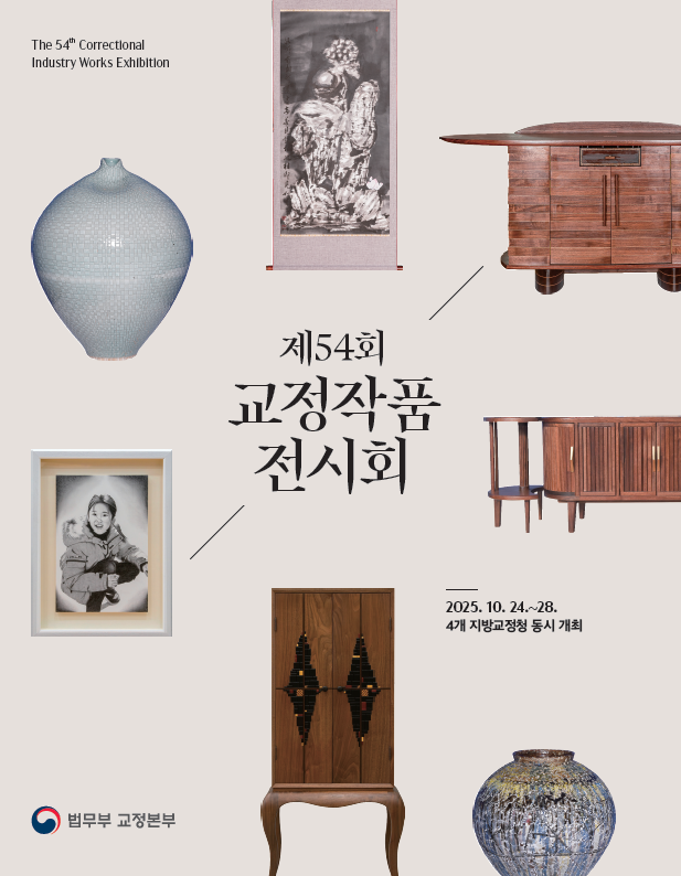 법무부(장관 정성호)는 10월 24일(금)부터 전국 4개 지방교정청 주관으로 제54회 교정작품전시회를 동시 개최한다.