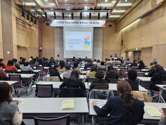 [충남/오창환기자] 충남도는 28일 공주 아트센터고마에서 ‘학교급식 관계자 협력체계 구축 워크숍’을 개최했다.