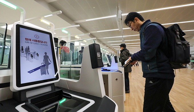 자동출국심사대 이용하는 승객들 2018.1.18 (사진=연합뉴스)