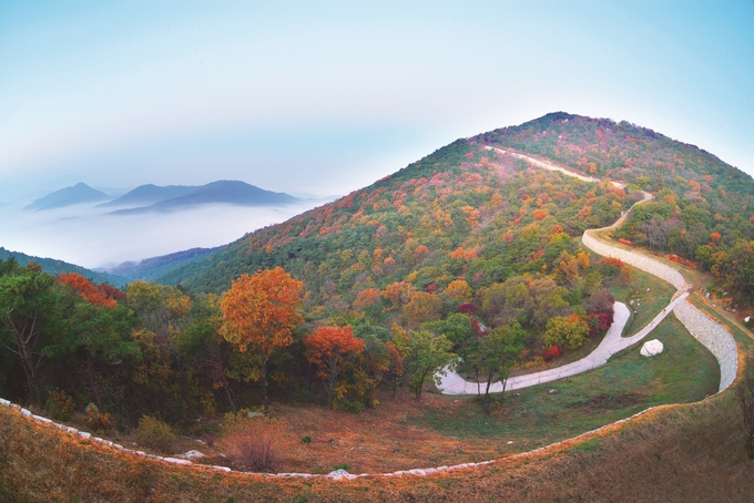 백제 부흥운동의 중심지였던 예산 임존성은 가을이면 형형색색 오색 단풍으로 수채화 같은 풍경을 자아내며, 성곽과 예당호의 절경이 어우러진다.