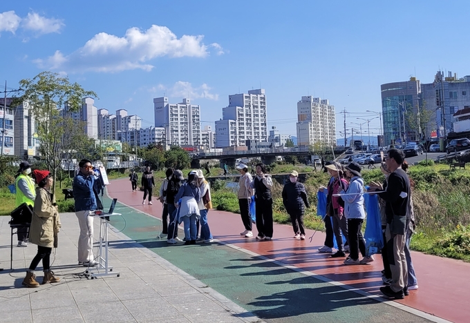 [경산/김근해기자] 하양꿈바우시장에서 1일 전통시장 활성화와 지역 주민들과의 소통을 위해‘조산천 플로깅 걷기대회’를 개최했다.