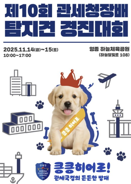관세청은 11월 12일(수)부터 11월 15일(토)까지 4일간 인천 영종도 소재 탐지견훈련센터와 하늘체육공원에서 최고 탐지견(Top Dog*)을 선발하는 ‘제10회 관세청장배 탐지견 경진대회’를 개최한다고 밝혔다.