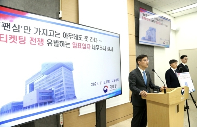 안덕수 국세청 조사국장이 6일 정부세종청사에서 열린 세무조사 브리핑에서 암표업자들을 대상으로 한 세무조사 계획을 발표하고 있다(국세청 제공). 2025.11.6. (ⓒ뉴스1)