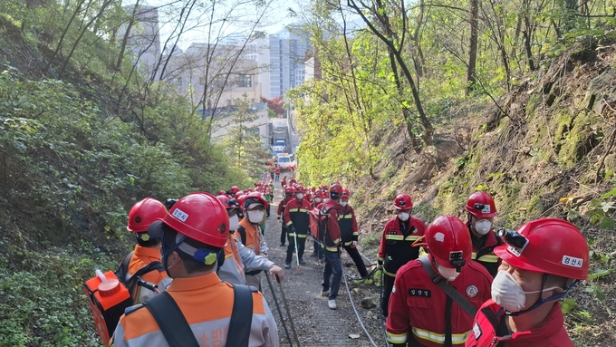이에 시는 ‘산불 발생 시 재난 취약 계층 대피 및 건물 화재 대응’을 주제로 실전형 훈련을 펼쳤다.