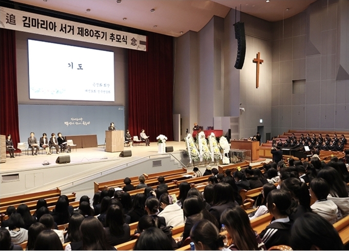 서울 송파구 정신여자고등학교 대강당에서 순국열사 김마리아 서거 제80주기 추모식이 열리고 있다. 2024.3.13 (사진=연합뉴스)