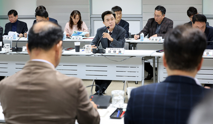김태흠 지사와 도 관계 공무원, 11개 기업 관계자 등 19명이 참석한 가운데, 이번 회의는 현안 보고, 기업 의견 수렴 등의 순으로 진행했다.