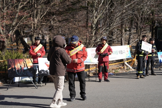 이번 합동 캠페인은 가을철 산불조심기간(10. 20.∼12. 15.)을 맞아 법주사 방문객을 대상으로 산불 예방의 중요성을 알리는 산불사진 전시, 산불 예방 홍보물 배포와 등산로 산지정화 활동을 진행하였다.