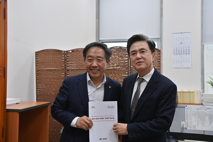 김 지사는 또 강승규 위원에게 △해양환경 대응형 소재부품 시험평가센터 사업비 20억 원 △국립국악원 서산분원 건립 설계비 16억 5000만 원 △보령 경찰수련원 신축 설계비 9억 8200만 원 △푸드테크 연구지원센터 구축 설계비 1억 2500만 원 △국립 예산 산림치유원 건립 사전 타당성 조사 사업비 2억 원 반영 지원을 추가 요청했다.