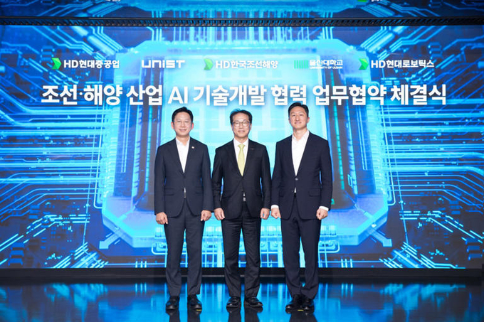 [한국방송/김주창기자] 과학기술정보통신부(부총리 겸 과기정통부 장관 배경훈, 이하 ‘과기정통부’)와 산업통상부(장관 김정관, 이하 ‘산업부’)는 울산과학기술원, HD한국조선해양, HD현대중공업, HD현대로보틱스, 울산대학교 등 5개 기관이 ‘조선·해양 산업 인공지능 기술개발 협력을 위한 업무협약을 11월 20일 HD현대 글로벌R&D센터(판교)에서 체결했다고 밝혔다.