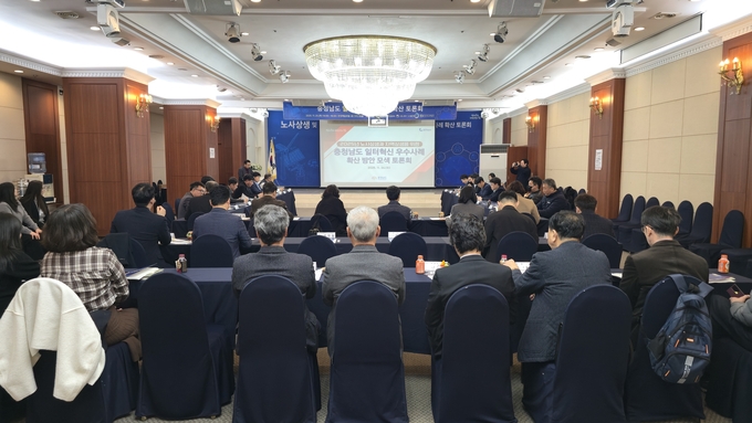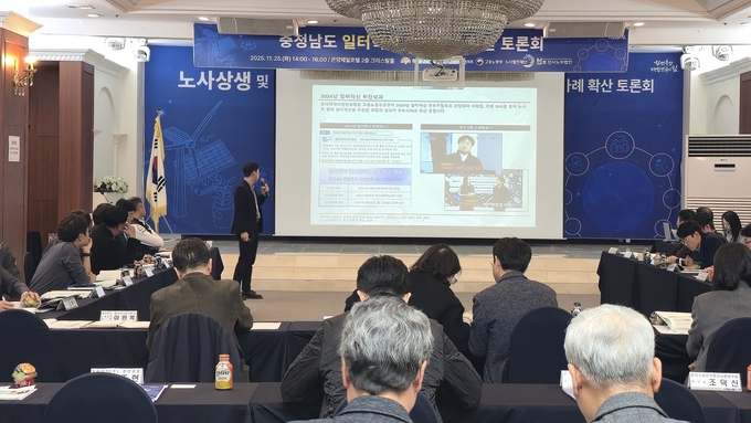[충남/오창환기자] 충남도와 충남노사민정협의회는 25일 오후 2시 아산시 온양제일호텔에서 ‘2025 충청남도 일터혁신 우수사업장 선정과 사례 확산 방안 모색 토론회’를 열고 도내 기업의 에너지진단 등 조직혁신 확산 방안을 논의했다.