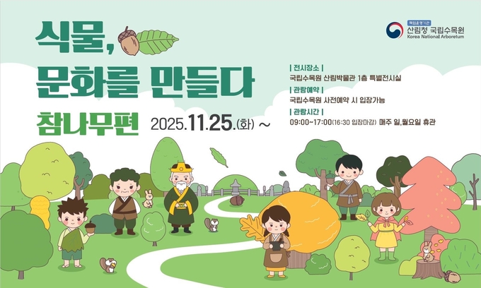 [한국방송/김성진기자] 산림청 국립수목원(원장 임영석)은 우리 생활과 가장 가까운 나무 중 하나인 ‘참나무’의 문화와 생태적 가치를 새롭게 조명한 기획전시 ‘식물, 문화를 만들다_참나무편’을 오늘(25일)부터 산림박물관 특별전시실에서 개최한다.
