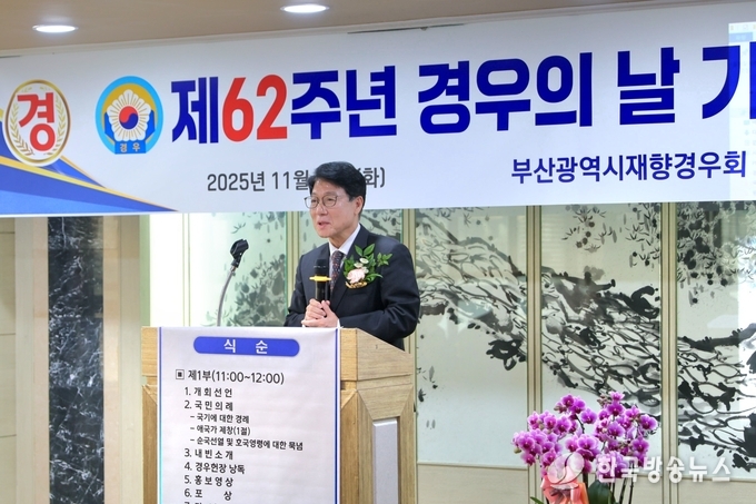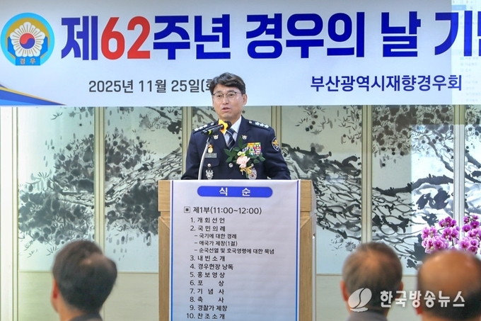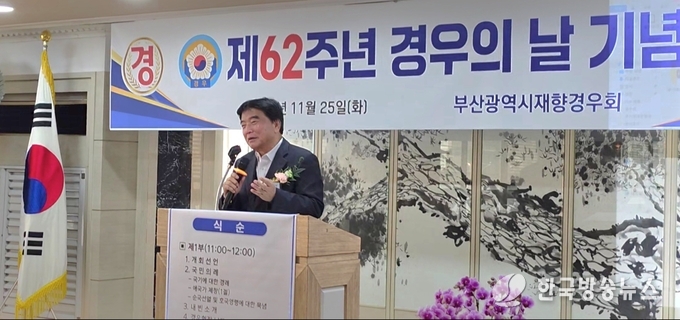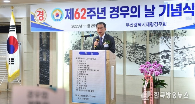 [한국방송/진승백기자] 부산광역시재향경우회(회장 최태식)에서는 2025년 11월25일오전 11시 부산 연산동 해암뷔페9층 대연회장에서 엄성규 부산경찰청장과 박경정 경무기획과장, 김철준 자치경찰위원장, 김병선 관리과장 등과 시 회 임원, 지역회장과 회원 등 165명이 참석한 가운데, 제62주년 경우의 날 기념식을 개최하고, 대한민국재향경우회 홍보영상 시청, 모범회원에 대한 포상 수여로 격려하는 행사를 가졌다.