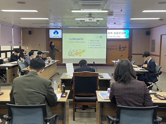 [군산/김주창기자] 군산시가 27일 군산시 인구정책 기본계획 수립 연구용역 최종보고회를 개최해, 군산의 인구구조 변화와 이에 따른 중장기 정책 방향을 논의했다.