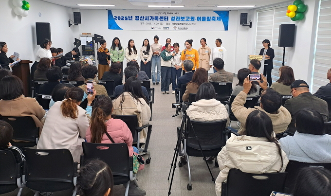 [경산/김근해기자] 경산시가족센터(센터장 정유희)는 지난 29일 역전마을 복합 커뮤니티 센터에서 지역 유관 기관 및 업무 협약 기관의 내빈 및 다문화 가족, 지역 주민 등 센터 이용자 100여명 이상이 참석한 가운데 사업성과 공유와 다양한 가족들이 함께 교류하고 소통할 수 있는 ‘2025년 성과보고회 & 어울림 축제’를 진행하였다.