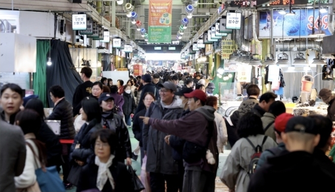서울 마포구 망원시장에서 시민들이 장을 보고 있는 모습. 2025.10.28 (ⓒ뉴스1)