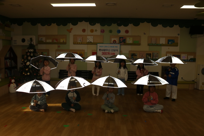 반사광 우산은 반사 기능을 통해 운전자의 가시성을 높일 수 있도록 제작, 야간이나 비가올 때 사용하면 어린이 보행 안전 확보에 큰 도움이 될 것으로 기대된다.