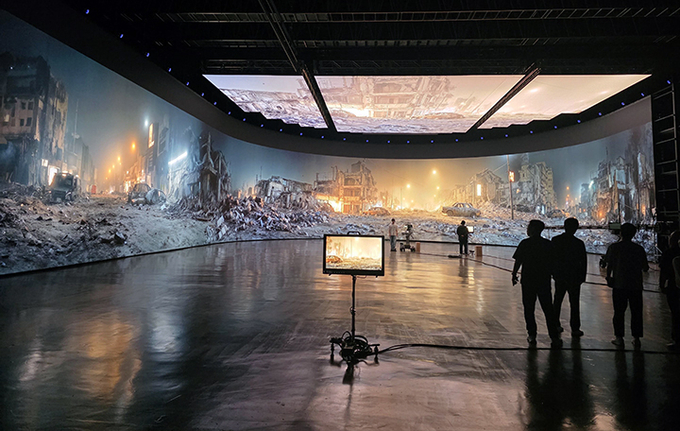 이번에 문을 여는 '버추얼 스튜디오'는 길이 60m, 높이 8m의 초대형 국산 엘이디(LED) 벽과 실시간 3차원 그래픽 기술로 실제 촬영현장과 가상의 배경을 결합하는 최첨단 제작시스템이다.